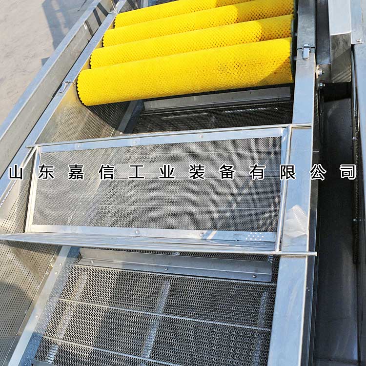 5、爬坡提升段設有二次噴淋裝置,可將清洗干凈的產(chǎn)品經(jīng)行二次清洗、噴淋。水源為自來(lái)水。