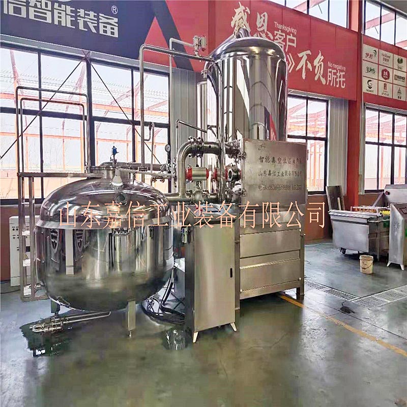 真空低溫油炸設備加熱方式采用蒸汽加熱。以蒸汽作為加熱介質(zhì),比較適合一定規模的工業(yè)化生產(chǎn)。其加熱器是螺旋盤(pán)管與夾套相結合,直接與炸油換熱。使用這一方式的特點(diǎn)是熱力足,特別是在炸品進(jìn)入釜體以后炸油溫度下降較多時(shí),加大蒸汽供應可以滿(mǎn)足加工時(shí)對熱量的需求。