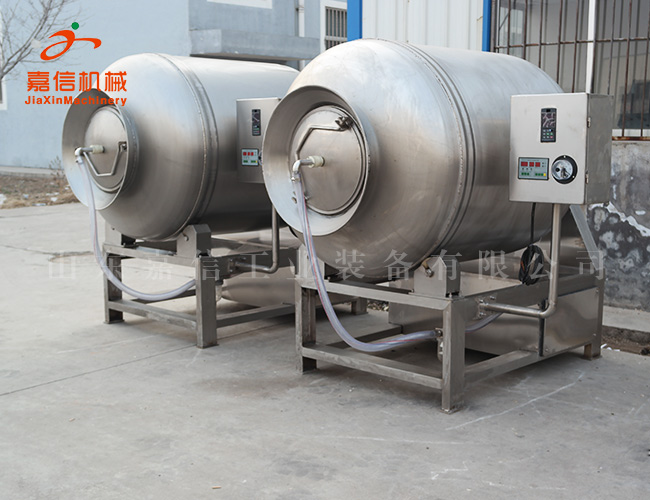 真空滾揉機是在真空狀態(tài)下,利用物理沖擊的原理,讓肉在滾筒內上下翻動(dòng),相互撞擊、摔打,達到按摩、腌漬作用,使肉均勻的吸收腌漬,提高肉的結著(zhù)力及產(chǎn)品的彈性;本機具有肺呼吸功能,讓產(chǎn)品在滾筒內膨脹、縮小了往復運動(dòng),改善了肉組織的結構,提高了切面效果,增加了出品率??梢栽鰪姳K?,改善產(chǎn)品的內部結構。