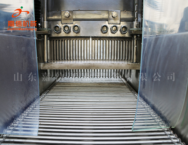 本機采用不銹鋼材料制作,設計合理。送肉鏈條可全盤(pán)托出,清洗方便,針頭排列為單針單管,設有自動(dòng)保護裝置,當注射針頭碰到硬物時(shí),注射針自動(dòng)彈起,不受損壞,真正達到了注射的肉無(wú)死角。